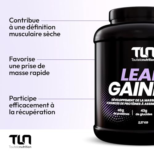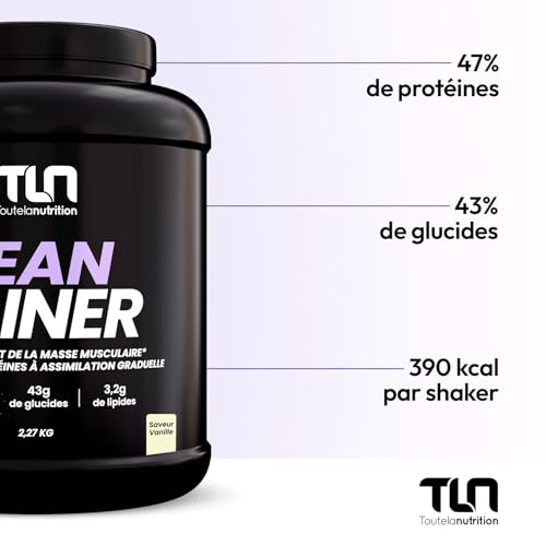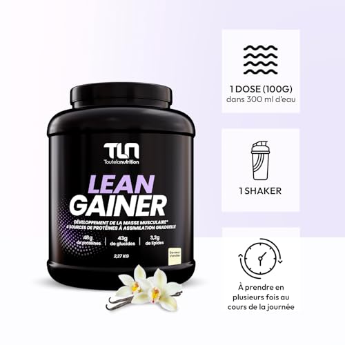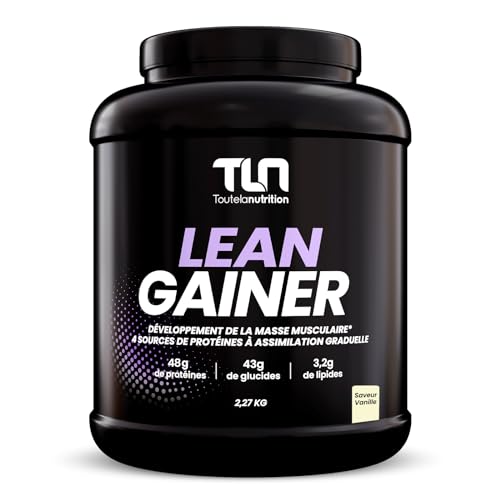 LEAN GAINER | 47g de Protéines sous 4 Formes | Isolat, Concentré de Whey, Hydrolysat et Caséine | 43g de Glucides | Maltodextrine et Fructose | L-Glycine et L-Arginine | 2,27kg | Goût Vanille | TLN
