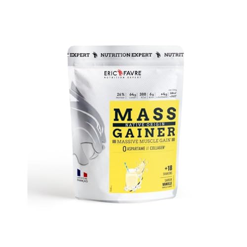 MASS GAINER NATIVE PROTEIN – Protéines et glucides bi-sources, Prise de Masse Rapide, Gain de poids et Masse Musculaire – Eric Favre – Vanille 1kg
