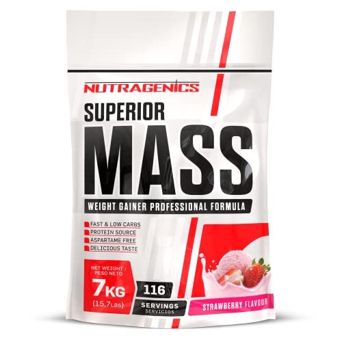 Mass Gainer – Nutragenics Superior Mass – 7 kg – Gainer prise de masse – Gainer prise de poid – Gainer mass – Proteine mass gainer – Whey gainer – Proteine gainer (Fraise)