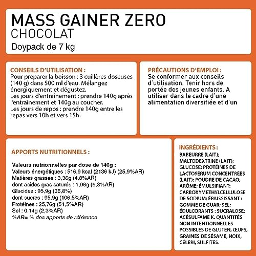 Soyez le premier à laisser votre avis sur “MASS GAINER ZERO +75% Glucides bi-sources, 13% Protéines, Prise de Masse Rapide, Gain de poids et Masse Musculaire – Eric Favre – Chocolat 7kg”
