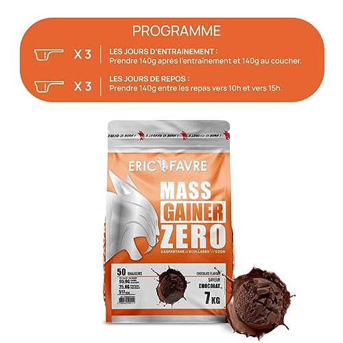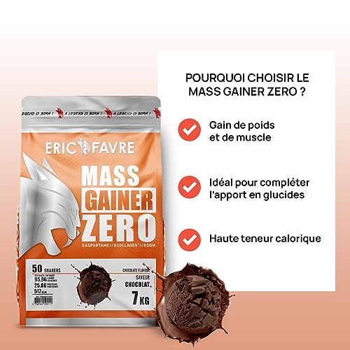 MASS GAINER ZERO +75% Glucides bi-sources, 13% Protéines, Prise de Masse Rapide, Gain de poids et Masse Musculaire – Eric Favre – Chocolat 7kg