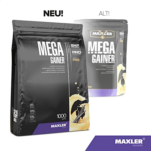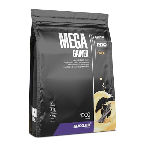 Maxler Mega Gainer – Gain de poids pour développer les muscles – Vanille – 1000g – combinaison de protéines, glucides, vitamines et minéraux – 10% de protéines de lactosérum – shake riche en calories