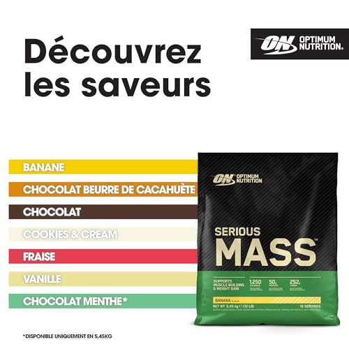 Soyez le premier à laisser votre avis sur “Optimum Nutrition Serious Mass Poudre de Protéine Gain de Masse Hautement Calorique avec 25 Vitamines et Minéraux, Créatine Monohydrate et Glutamine, Saveur Banane, 16 Portions, 5.45 kg”