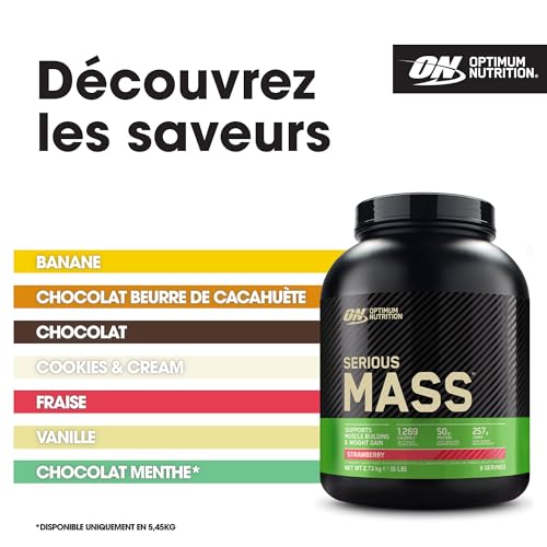 Depuis plus de 35 ans, Optimum Nutrition aide les athlètes axés sur la performance à atteindre leurs objectifs. Nous vous proposons aujourd’hui la version intense et optimisée de notre produit pour la construction musculaire et la prise de masse. Voici la poudre protéinée hypercalorique Serious Mass, conçue pour les vrais amateurs de sport et les athlètes de haut niveau. Serious Mass est la formule ultime de renforcement musculaire et de prise de masse. Cette poudre protéinée constitue le shake idéal après l’entraînement et entre les repas pour atteindre vos objectifs. Chaque portion de ce gainer contient 25 vitamines et minéraux essentiels (dont la vitamine D, B12, E, la biotine et le magnésium), plus de 1 250 calories pour augmenter votre apport calorique, 50 grammes de protéines pour soutenir la croissance musculaire* et 250 grammes de glucides pour aider à la récupération musculaire**. De plus, chaque portion a également été enrichie de 3 grammes de créatine monohydrate qui augmente vos performances physiques pendant les exercices de haute intensité***. Conçue pour les athlètes soucieux de leurs objectifs, notre poudre protéinée ON Serious Mass High Calorie Weight Gainer est proposée en 6 saveurs savoureuses : banane, chocolat beurre de cacahuète, chocolat, cookies & crème, fraise et vanille. Mélangez cette protéine de qualité avec des fruits ou du beurre de noix pour des calories supplémentaires et découvrez votre combinaison de goût optimale. Serious Mass est rapide, pratique et facile à préparer : il suffit de mélanger 2 dosettes à 710 ml d’eau ou de lait végétal. Utilisez-la après un entraînement intense dans le cadre de votre programme de récuperation, entre les repas et avant le coucher pour ajouter des calories, des glucides et des protéines à votre régime sain et équilibré. * Source : EFSA Journal 2010;8(10):1811 ; 2011;9(6):2203 ** Source : EFSA Journal 2011;9(6):2211 ***Source : EFSA Journal 2011;9(7):2303