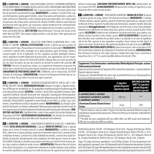 BioTechUSA L-Carnitine + Chrome | Formule de contrôle du poids | Sans stimulant | 1470mg L-Carnitine L-tartrate par portion, 60 gélules