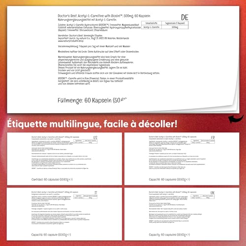 Doctor’s Best, Acétyl-L-Carnitine avec BIOSINT, 500mg, 60 Capsules végétaliennes, Testé en Laboratoire, Sans Gluten, Sans Soja, Végétarien