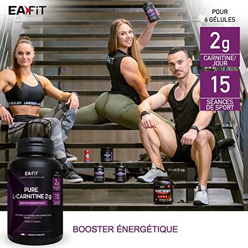 EAFIT Pure L-Carnitine – Booster energetique, Améliore la performance dans le sport comme la musculation – L-Carnitine 2000 mg, 90 Gélules – S’utilise en pre workout – vitamine b6
