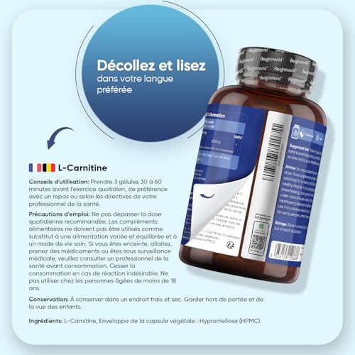 Alternative à la poudre – Ces gélules contiennent un seul ingrédient : la L-carnitine. De plus contrairement aux formats poudres, les gélules ont un dosage précis et plus pratique (doses déjà prêtes). Néanmoins, si besoin, la capusle peut être brisée pour en extraire la poudre et la mélanger à un shaker ou un jus.