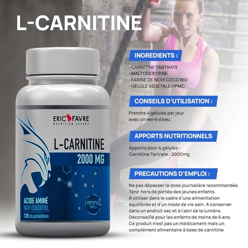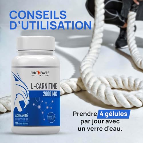 L-CARNITINE 2000mg – L Carnitine Acide Aminé semi-essentiel, Antioxydant, Energie, Aide à la combustion des tissus adipeux, 120 gélules – Eric Favre