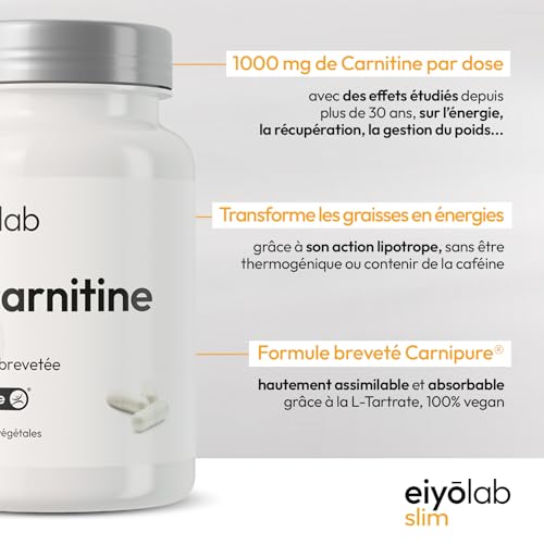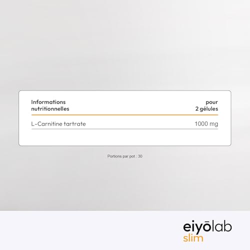 L-CARNITINE Premium Brevetée Carnipure® | Energie – Sèche – Récupération | Pre-workout Sans Caféine ni Stéarate de Magnésium | Doping Free | 60 Gélules Vegan | Made in France | Eiyolab