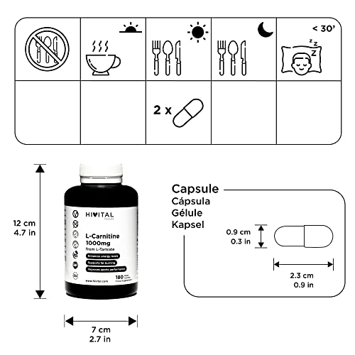 ❤️ LA MEILLEURE L-CARNITINE: Fabriqué avec 1488 mg de tartrate de L-Carnitine avec une concentration naturelle de L-Carnitine de 67,2%, fournissant 1000 mg de L-Carnitine pure à l’organisme. POSOLOGIE : Prendre 2 gélules par jour, 30 à 60 minutes avant l’exercice.