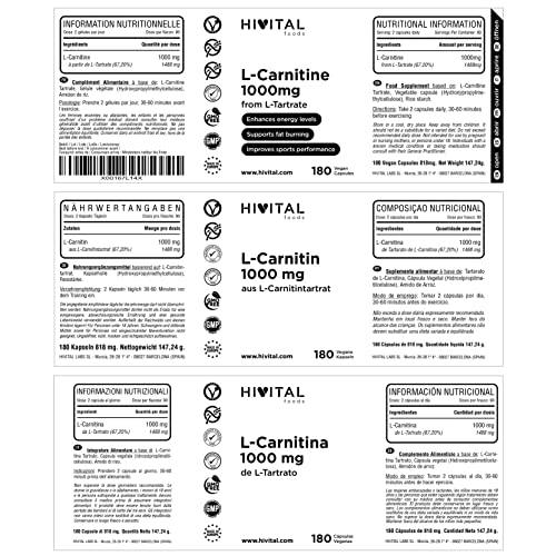 👍 EXCELLENTE FORMULE à base de 1000 mg de L-Carnitine pure par dose, obtenue par fermentation bactérienne (100% Vegan). GRANDE QUANTITÉ DE PRODUIT AU MEILLEUR PRIX: Nous offrons 180 gélules végétaliennes par boîte, pour un approvisionnement de 3 mois.
