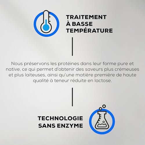 🧪 TECHNOLOGIE SANS ENZYME POUR LA PURETÉ : Contrairement à de nombreuses autres protéines en poudre, nous n’utilisons pas de traitement enzymatique pour réduire la teneur en lactose. Au lieu de cela, notre technologie de filtration de pointe conserve naturellement la pureté de la protéine, garantissant un produit plus propre et plus naturel sans l’utilisation de produits chimiques ou d’additifs inutiles.