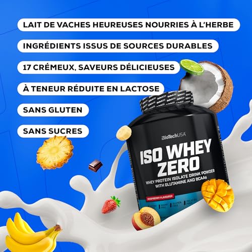 🥛 FAIBLE TENEUR EN LACTOSE, SANS SUCRE ET FORMULATION PROPRE : Iso Whey Zero contient un taux de lactose réduit et aucun sucre ajouté, offrant ainsi une source de protéines plus propre. Elle est également sans gluten, sans huile de palme et sans conservateur, ce qui en fait une excellente option pour les personnes ayant des sensibilités alimentaires ou des objectifs nutritionnels spécifiques.