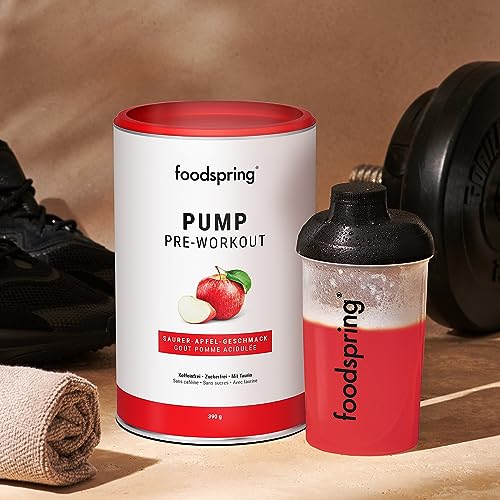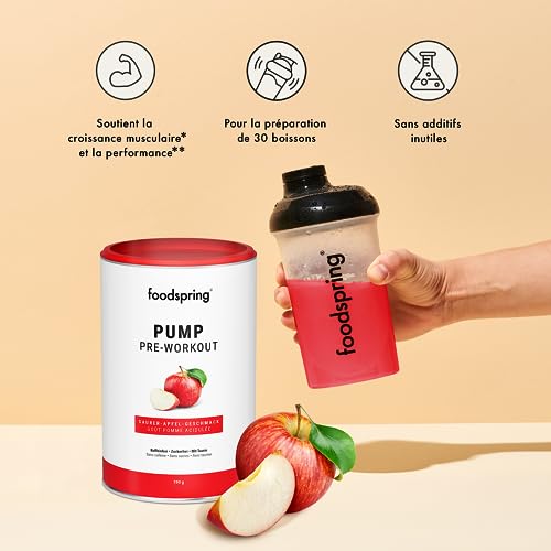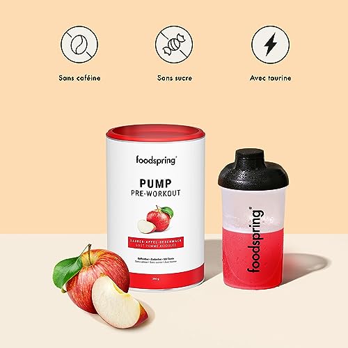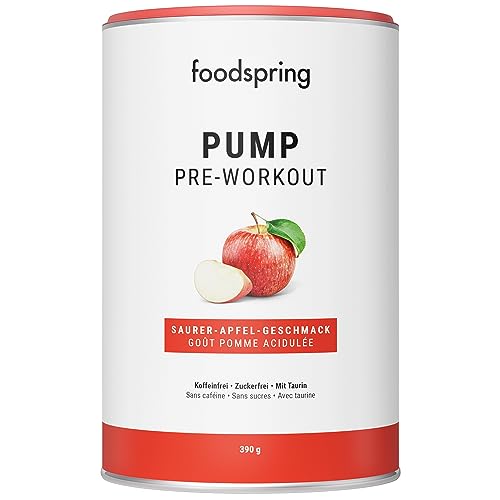 foodspring Pump Pre-Workout pour un boost supplémentaire pendant l’entraînement – sans caféine & sans sucre – Booster pour la prise de masse (390g | Pomme acidulée)