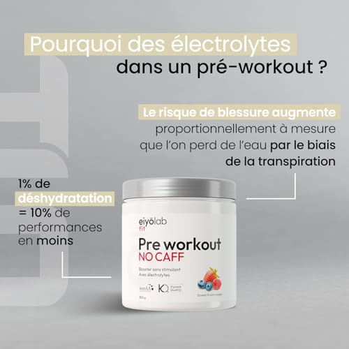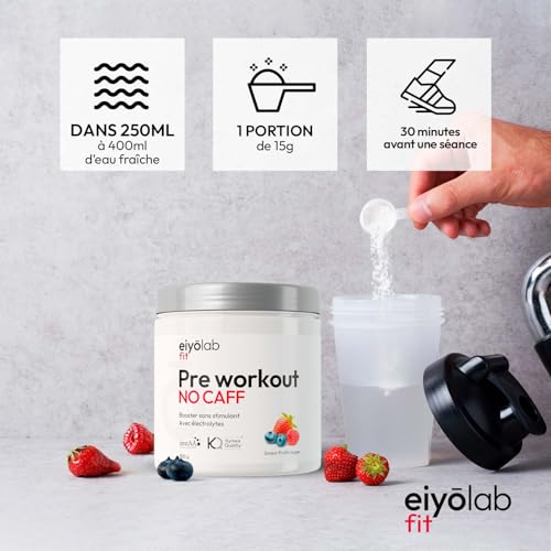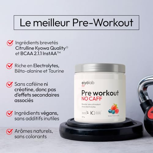 Pre Workout sans Caféine ni Créatine | Citrulline Kyowa et BCAA instantanés | Électrolytes pour Hydratation Optimale | L-Arginine + Bêta Alanine & Taurine | 300g de Poudre Fruits Rouges | Eiyolab