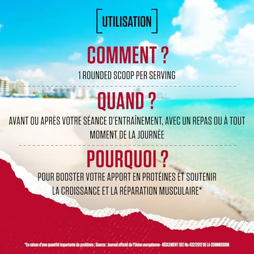 Ce supplément de protéines en poudre est faible en sucre et contient 24 grammes de protéines par dose pour favoriser la prise de masse maigre et l’entretien musculaire*