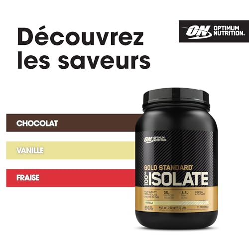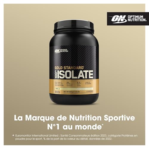 Optimum Nutrition ON Gold Standard 100% Isolate Pure Whey Protéine, BCAAs et Glutamine d’Origine Naturelle, Avant et Après Entraînement, Saveur Vanille, 31 Portions, 930 g