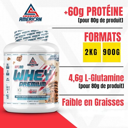 Whey Protein | Protéine de Lactosérum Premium | Favorise la Prise de Masse Musculaire | Haute Concentration en Protéines | Kyowa Quality® (2 kg, biscuits)