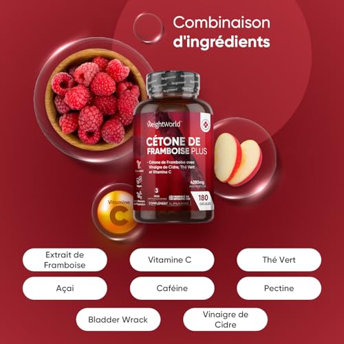 Cétone de Framboise Avancée 180 Gélules Vegan Complex 8-en-1 : Vinaigre de Cidre, Thé Vert, Caféine, Açaï, Fucus Vesiculosus, Pectine, Vitamine C, Raspberry Ketone de Framboise Regime Keto (Cétogène)