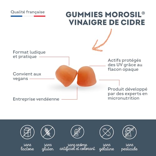 🏠 FABRICATION FRANCAISE : Ces gummies Morosil Vinaigre de cidre sont garantis sans gluten, sans lactose, sans sucre, sans gélatine, sans arôme ni colorant artificiel. Ils sont fabriquées dans nos laboratoires en Vendée, selon des protocoles et normes stricts et contrôlés.