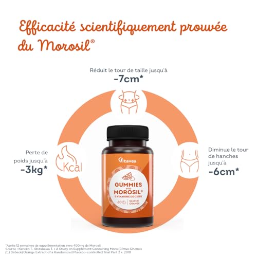Gummies Morosil® 400 mg et Vinaigre de Cidre – Efficacité Scientifiquement Prouvée du Morosil®, Actif Breveté – Saveur Orange – Convient aux Vegans – 60 unités – Vitavea