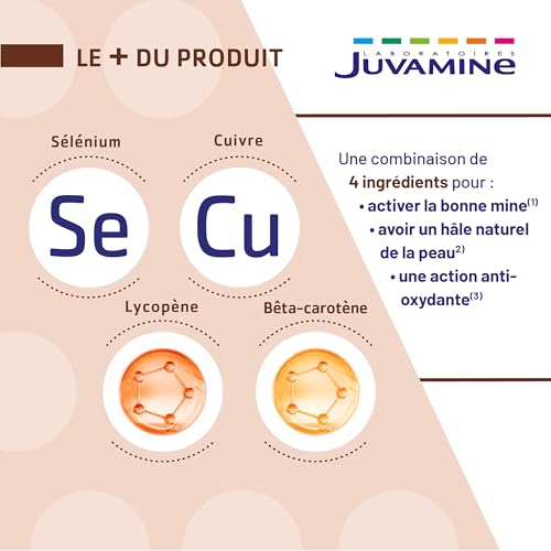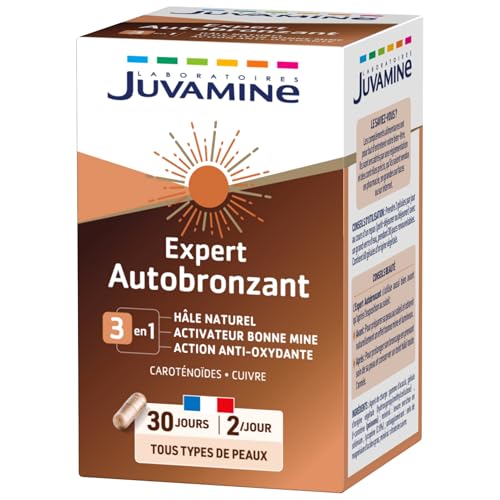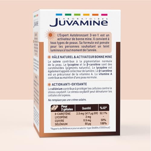 JUVAMINE Expert Autobronzant 3 en 1, Bonne Mine, Action Anti, Oxydante, Hâle naturel, Caroténoïdes, Avant et Après une Exposition au Soleil, Programme de 30 jours, 60 gélules, Fabriqué en France