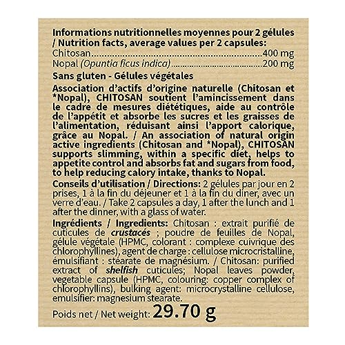 NUTRIEXPERT – CHITOSAN – Absorbe Sucres et Graisses – Réduit l’appétit – Favorise l’amincissement – Gélules végétales – Lot de 2 produits