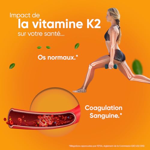 VITAMINE D AVEC K, LE COMPLEXE PUISSANT ! Cette combinaison agit en synergie pour vous offrir des avantages supplémentaires. La vitamine K contribue au maintien d’une ossature normale et à la coagulation sanguine normale (EFSA). La vitamine K2 (Ménaquinone) à 200 μg, combinée avec la vitamine D3 (Cholécalciférol) à 50 μg (2000 UI), vous offre une biodisponibilité optimale.