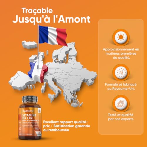COMPLEXE VITAMINE D & K2 ! La sélection rigoureuse des ingrédients de notre Vitamine D K2 à 2000 UI et 200 μg garantit leur origine naturelle et l’absence d’OGM. Conçu spécialement sans stéarate de magnésium, notre complément convient à tous, y compris au régime alimentaire végan. De plus, notre complexe est reconnu par l’État belge, garantissant une qualité certifiée.