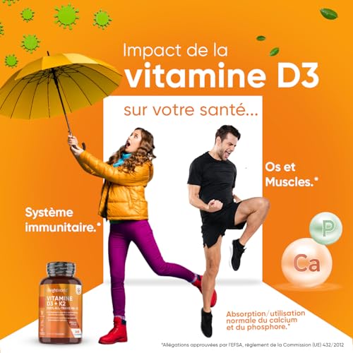 VITAMINE D3 ALLÉGATION PAR EFSA ! La vitamine D contribue au maintien d’os normaux, d’une fonction dentaire & musculaire normale. De plus, elle contribue au fonctionnement normal du système immunitaire ainsi qu’à l’absorption & à l’utilisation normale du calcium & du phosphore. En outre, la vitamine D contribue également à maintenir des taux normaux de calcium dans le sang.