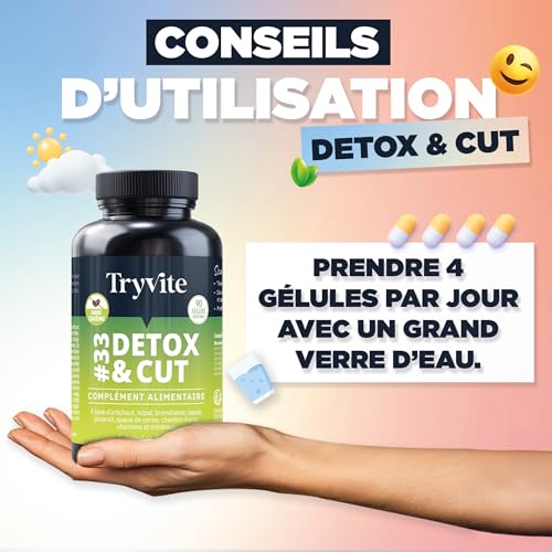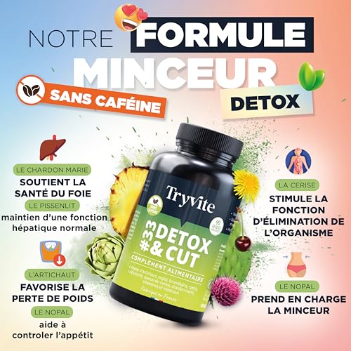 Detox Minceur Puissant et Rapide | Coupe Faim Puissant et Efficace | Perte de Poids Rapide et Efficace | TRYVITE DETOX&CUT | 90 Gélules | Fabriqué en France