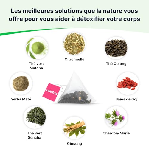 Thé Détox – Mélange de Plantes pour le Bien-être avec Pissenlit, Ginseng et Gingembre – Infusion pour Ballonnements, Ménopause, Gestion du Poids et Vitalité – 28 Sachets