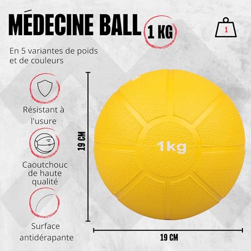 ✅Disponible en plusieurs poids/couleurs: Les ballons médicinaux sont disponibles en jaune (1 KG), rouge (2 KG), vert (3 KG), bleu (4 KG) et noir (5 KG).
