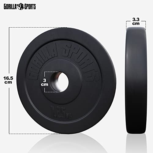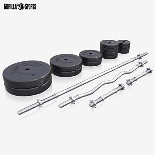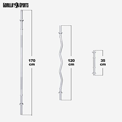 GORILLA SPORTS® Set de Barres d’Haltère – avec Disques de Poids 100kg, Ø 30mm, Fermoirs en Forme d’Étoile, Curl SZ 120cm, 2 Haltères Courts – Barre Longue, Gym, Fitness, Musculation, Haltérophilie