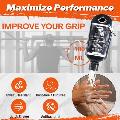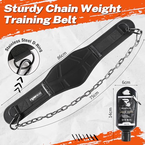 IRONPULSE® | Magnésie Liquide 100 ml + Ceinture Lestée 150 kg | Chaîne 75 cm | Poids Musculation, Barre Traction, Haltères, Disque, CrossFit, Sangle Tirage, Ceinture Lombaire, Fitness