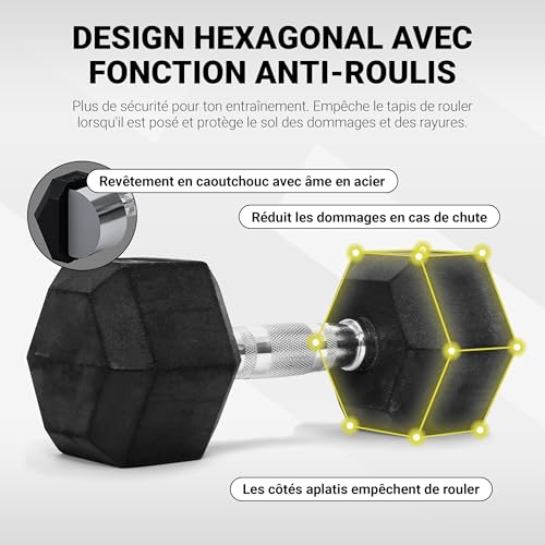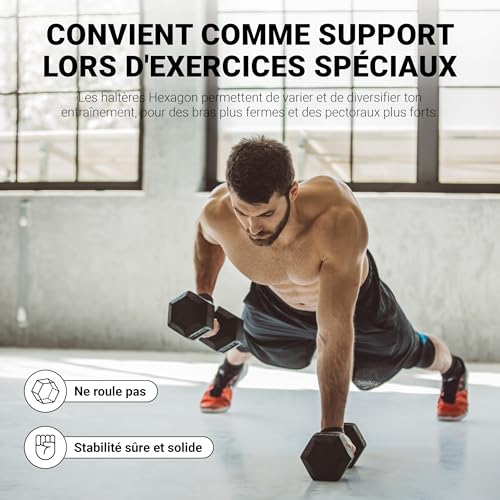 Qualité – Ensemble d’haltères courtes avec revêtement en caoutchouc de qualité supérieure. Gaine en plastique de qualité supérieure – Grâce à la gaine en plastique, il est facile à nettoyer et agréable à poser sur le sol – Physiologiquement sans danger, parfaitement hygiénique – Doux pour la peau et solides.