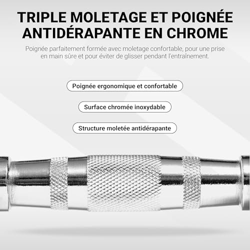 Caractéristiques et expédition – Matériau : Tige : acier chromé, revêtement en caoutchouc – Cœur en métal massif – Contenu : 1 paire (2 pièces) de poids au choix ou ensemble complet. Expédition – Via le service de messagerie ou la packstation.