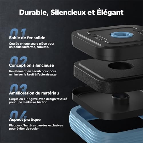 [Conception de Structure Carrée] Les pièces de haltère carrées sont enveloppées d’un matériau en mousse haute densité sur la couche extérieure des haltères, un son léger d’entraînement, ne blessent pas le sol, les altères musculation ne rouleront pas au hasard, peuvent être utilisées comme support de pompes.