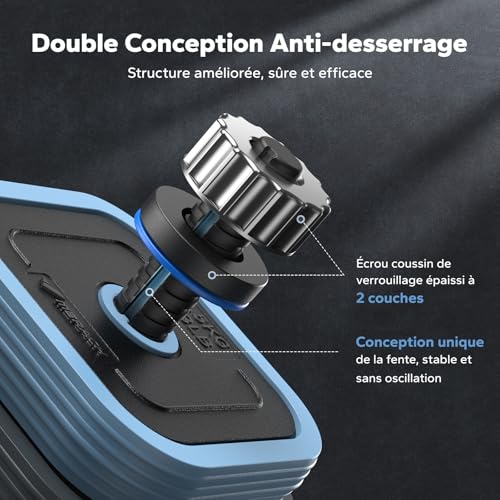[Structure de Sécurité Double] L’ensemble haltère réglable adopte une double conception anti-desserrage. Écrou tampon épais et conception de fente, pour garantir que la barre de musculation avec poids ne tremblera pas et ne tombera pas pendant l’utilisation, pour assurer votre sécurité d’utilisation.