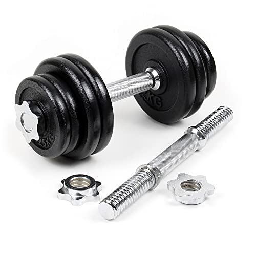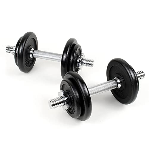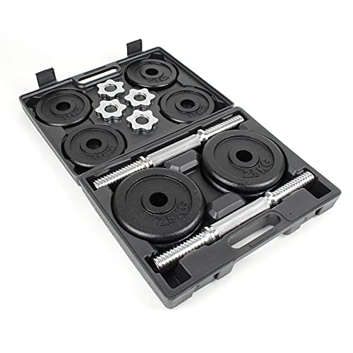 WilTec LUXTRI Kit d’haltères Courts 20kg Coffret 8 plaques Fonte 2 Barres haltères moletées Loquet étoile