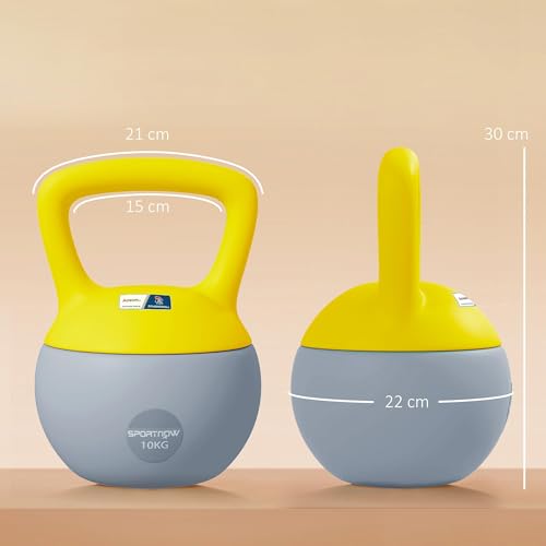 Kettlebell 10kg – Collaboration Aosom.fr x FFHandball – haltère avec poignée antidérapante pour fitness musculation cardio, gris et jaune