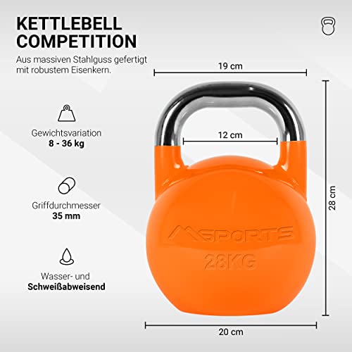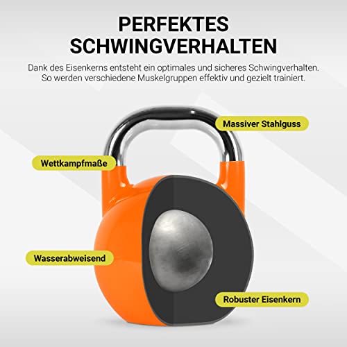 MSPORTS COMPETITION KETTLEBELL – Convient pour une utilisation professionnelle en studio (qualité studio) ou pour l’entraînement à la maison. Avec les kettlebells Msports, vous êtes parfaitement équipé. Nos kettlebells ont été développées en collaboration avec des entraîneurs de fitness, en veillant à la composition et à la gradation optimales du poids. Le noyau en métal robuste garantit un entraînement sûr et un comportement de balancement optimal.