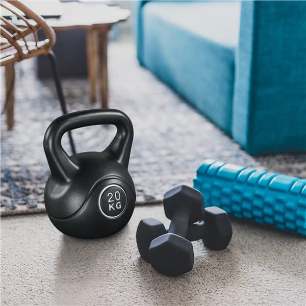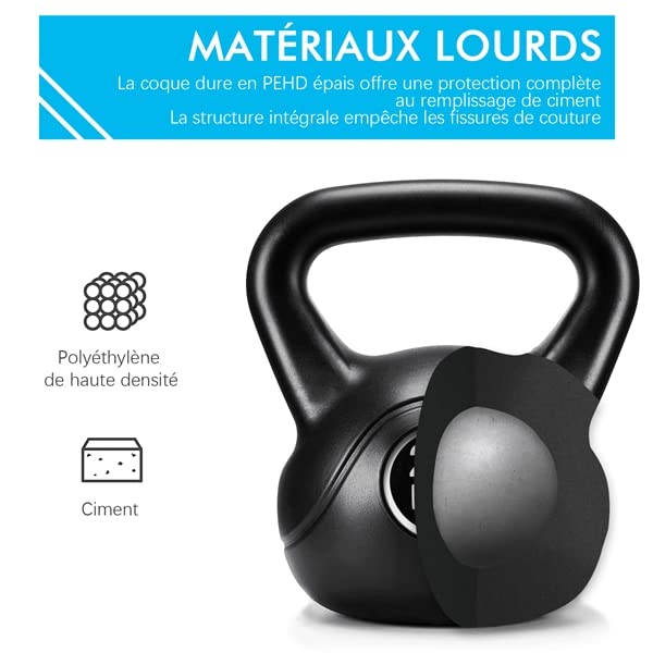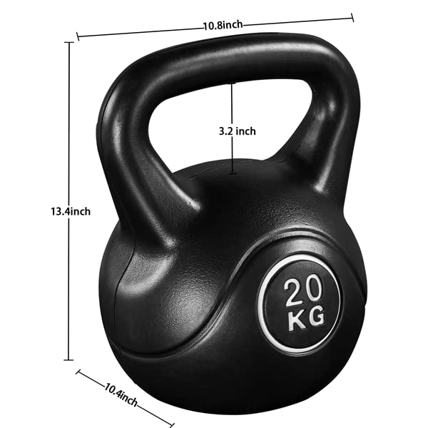 Kettlebell de 20 kg en Ciment et Plastique HDPE, Kettlebell pour Fitness, Musculation à Domicile et au Gym
