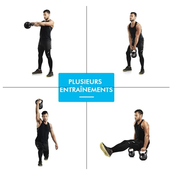 Équipement d’entraînement : Le kettlebell participe à vos exercices quotidiens comme les squats, les soulevés de terre, les redressements assis, les presses… Vous pourriez réaliser vos plans d’entraînement au niveau supérieur via ce kettlebell.
