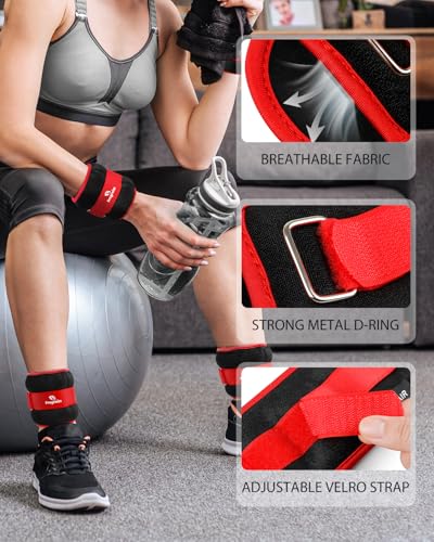 Ajustement serré : La fermeture à sangle réglable permet un ajustement sûr et personnalisé à la cheville, au poignet, au bras ou à la jambe. La sangle velcro assez longue permet de mettre et d’enlever les poids très facilement.