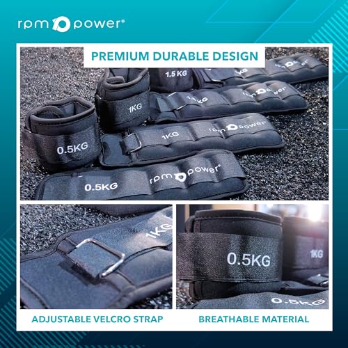 RPM Power Paire de poids de poignet et de cheville – Poids portables pour poignet et cheville pour la course, la marche, le fitness à domicile, la gymnastique et l’entraînement sportif
