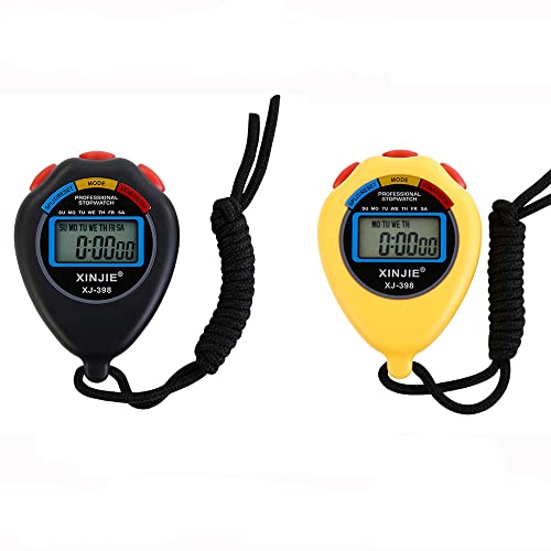 Lot de 2 chronomètres électroniques, chronomètres numériques de sport avec date, heure et fonction alarme, chronomètre multifonction pour entraîneurs de fitness et arbitres