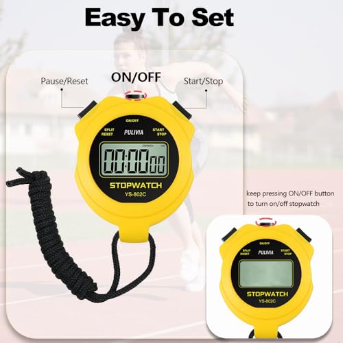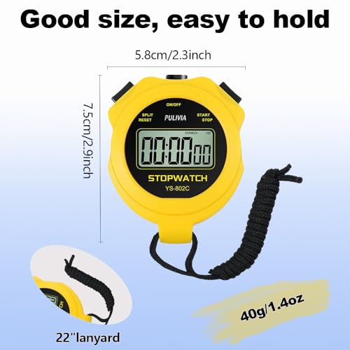 PULIVIA Chronomètre Sportif avec Silencieux et Bouton Marche/Arrêt, Pas de Calendrier pour Opération Facile, Chronomètre Numérique pour Les Entraîneurs pour Enfants Qui Gèrent la Natation, Jaune