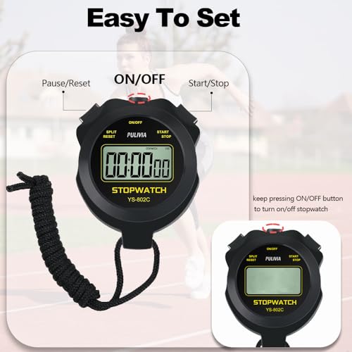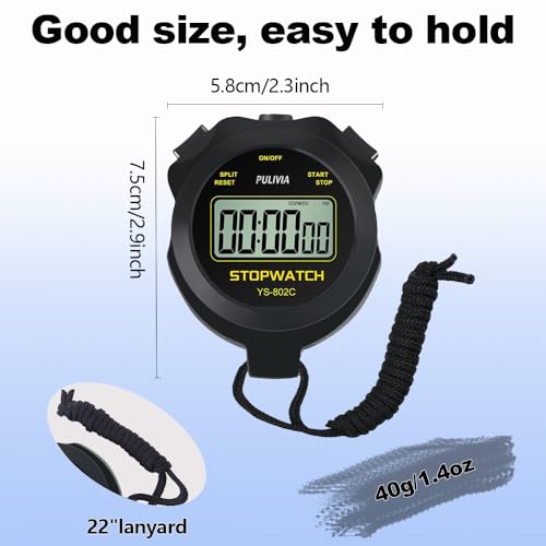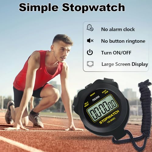 PULIVIA Chronomètre Sportif avec Silencieux et Bouton Marche/Arrêt, Pas de Calendrier pour Opération Facile, Chronomètre Numérique pour Les Entraîneurs pour Enfants Qui Gèrent la Natation, Noir